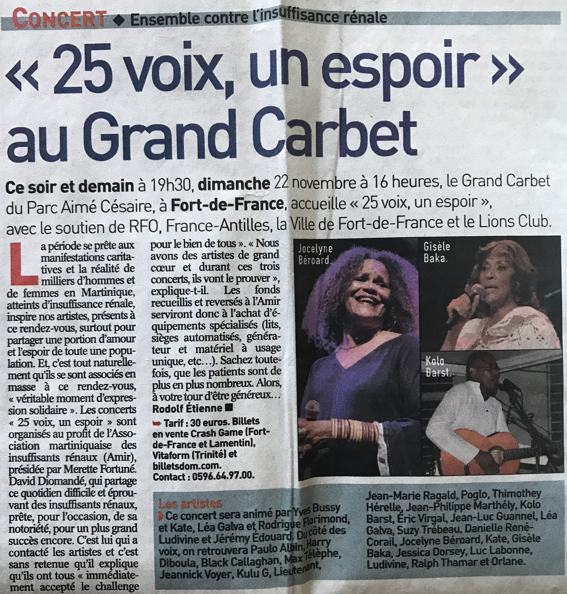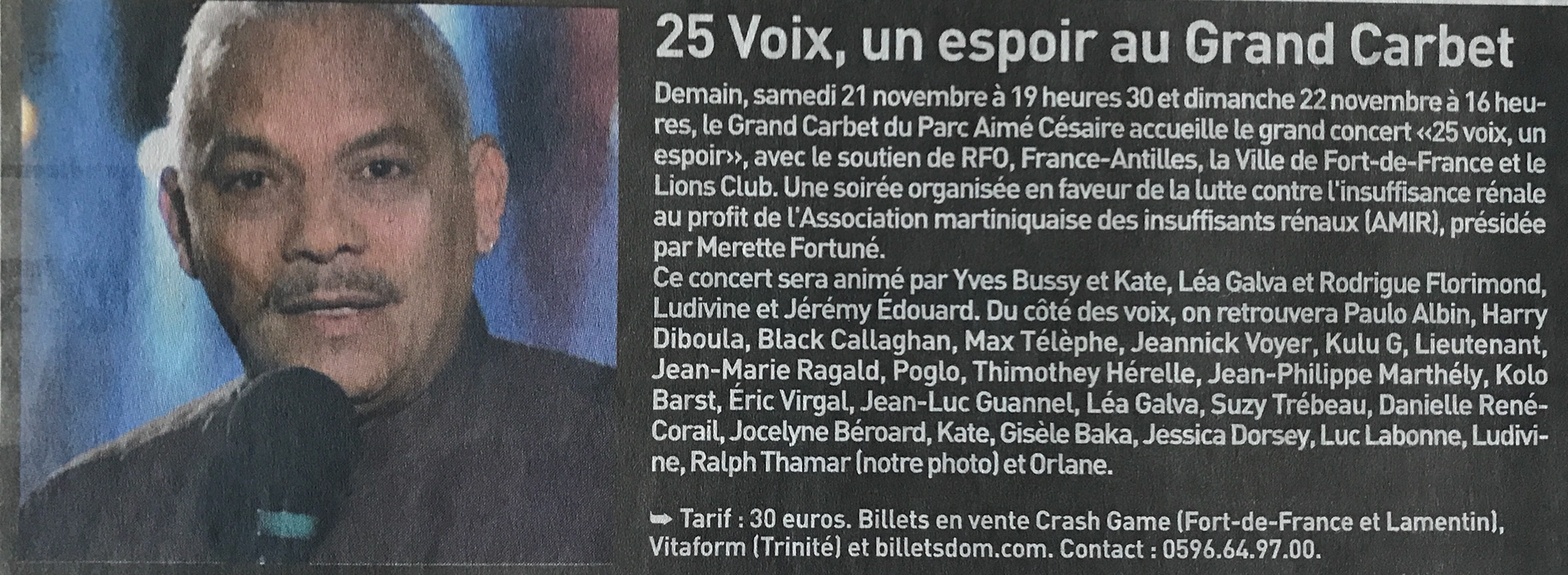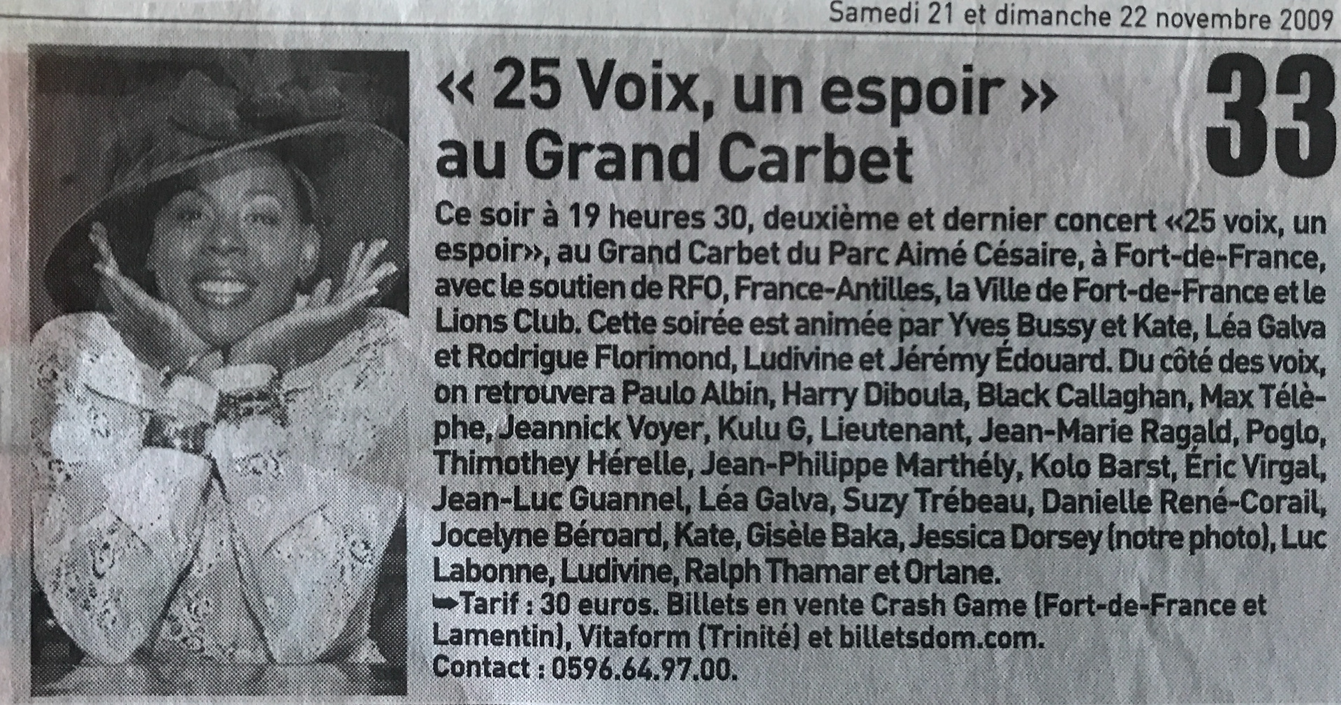 Merci à Gilles Rosine et ses musiciens, à Dominique Douge, Clément Marie et Sound Caribean System, à Ghislaine Renaudeau et billetsdom.com, à l'inclassable Ronald Tulle, à tous ces artistes aussi talentueux que généreux, à mes 6 (amis) présentateurs Kate et Yves Bussy, Léa Galva et Rodrigue Florimond, Ludivine Rétory et Jérémy Edouard. Ma reconnaissance éternelle aux Docteurs Violaine Emal-Aglaé et Louis Cohen, MD.