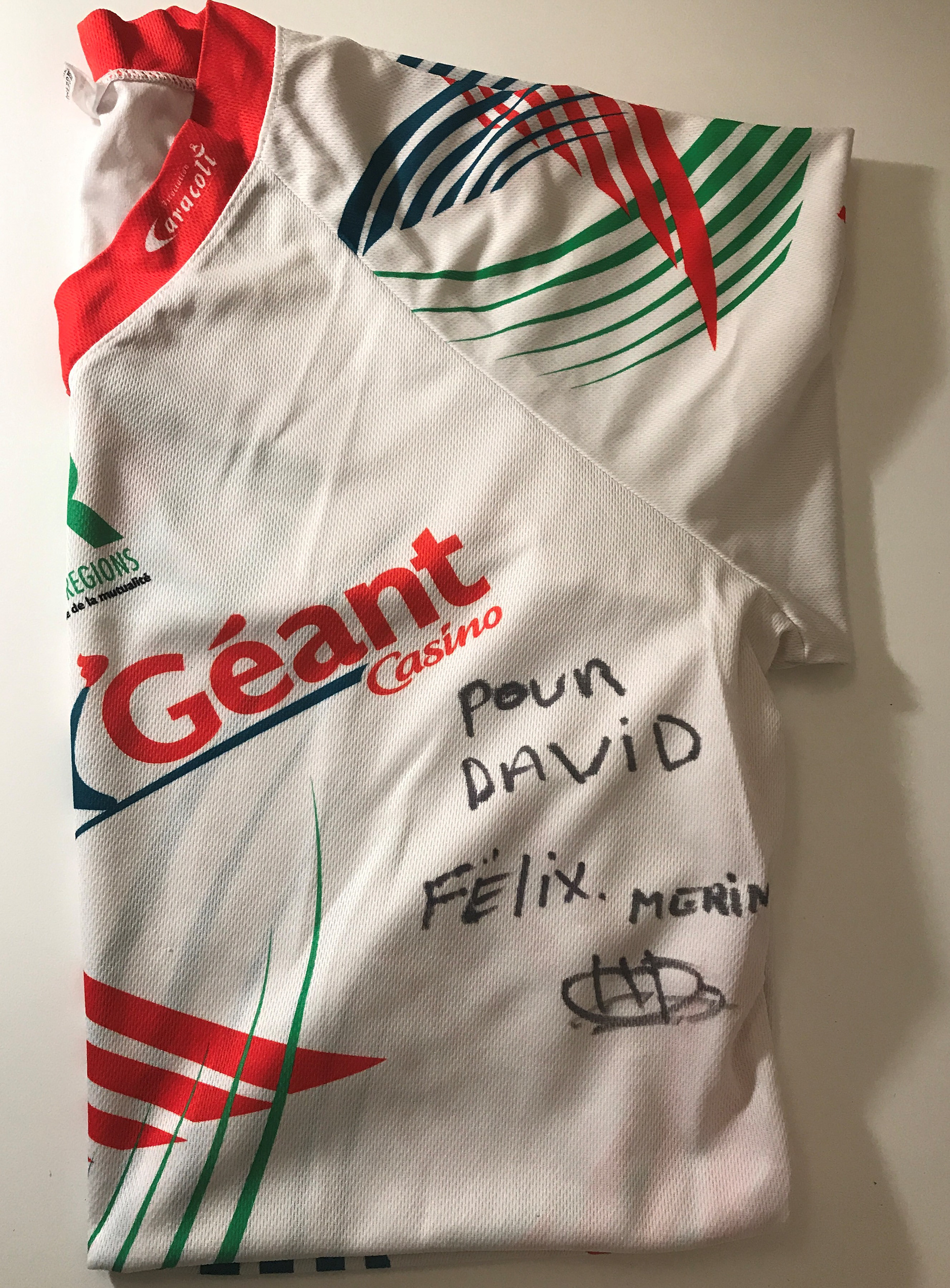 Après avoir été l’invité vedette d’un DLP! Felix Mérine désormais décuple champion du Tour de la Martinique des Yoles Rondes tint à offrir à David l’un de ses maillots dédicacé!